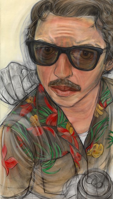 Stylianos Schicho is an observer. His pictures are on the one hand snapshots of the present, on the other hand visions of the artist of a possible future. He shows us people engaged in secondary activities, such as the use of a mobile phone or leisure activities with a game console. The people in Schicho’s pictures often seem lost in thought – somehow removed from reality. The angle at which they are presented to us is also unusual. What is striking is that the subjects are usually depicted from an angle at the top. Schicho makes it clear to us what we already know for a long time or at least have unconsciously taken note of; namely the fact that we are constantly observed by someone, both in public space through surveillance cameras and now also in the private sphere through the Internet, smartphones and social networks.