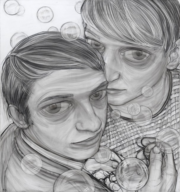 Stylianos Schicho ist ein Beobachter. Seine Bilder sind zum einen Momentaufnahmen der Gegenwart, zum anderen aber auch Visionen des Künstlers einer möglichen Zukunft. Er zeigt uns Menschen bei nebensächlichen Tätigkeiten, wie etwa dem Gebrauch eines Mobiltelefons oder beim Freizeitvergnügen mit einer Spielkonsole. Die Menschen, die auf Schichos Bildern zu sehen sind, wirken oftmals gedankenverloren – irgendwie der Wirklichkeit entrückt. Auch der Aufnahmewinkel, von welchem sie uns präsentiert werden, ist ungewöhnlich. Auffallend ist, dass die Dargestellten meist von schräg oben dargestellt sind. Schicho macht uns klar, was wir ohnedies schon lange wissen oder zumindest unbewusst zur Kenntnis genommen haben; nämlich die Tatsache, dass wir sowohl im öffentlichen Raum durch Überwachungskameras, aber mittlerweile auch im Privatbereich durch Internet, Smartphones und soziale Netzwerke, ständig von irgendjemandem beobachtet werden.